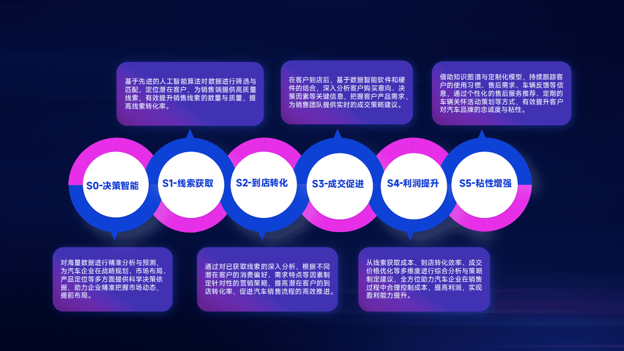 通过拓宽潜在客户来源、、、、优化线索分配并提高到店转化率,,以增强销售效率。。。同时,,,利用线索数据不断优化分析模型,,,,有效提升转化率,,,,扩大营销影响力。。。